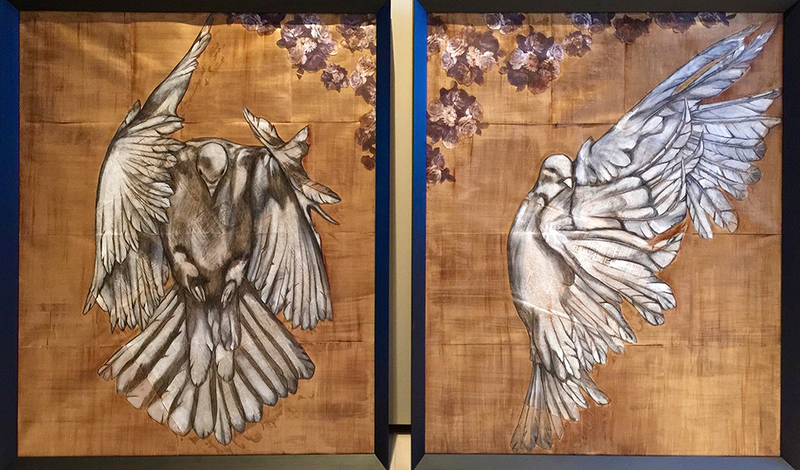 2 tele 80x100 - Tecnica mista su buste dorate - 2015